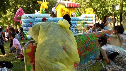 Parade du Festival d'Art Lyrique d'Aix-en-Provence, le 24.06.2018 sur le Cour Mirabeau. Les gens ont pu défiler avec les créatures qu'ils ont pu réaliser lors des ateliers de création au Château de l'Horloge.