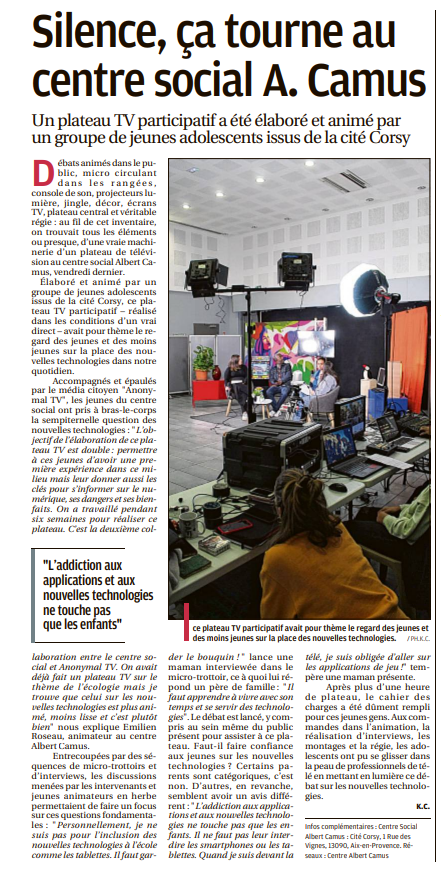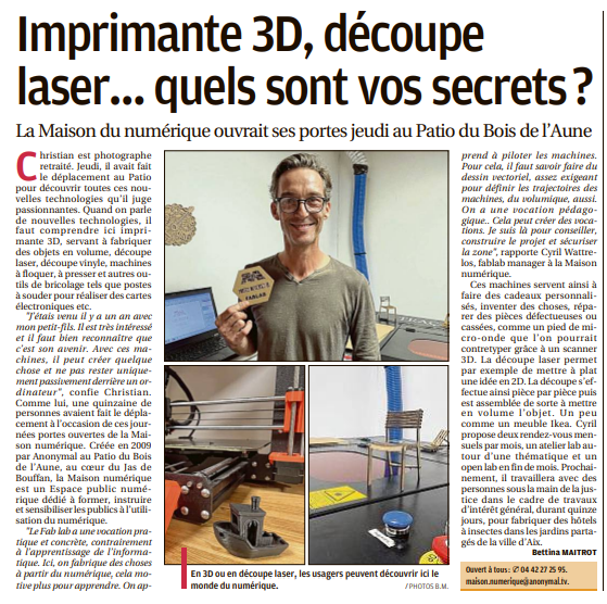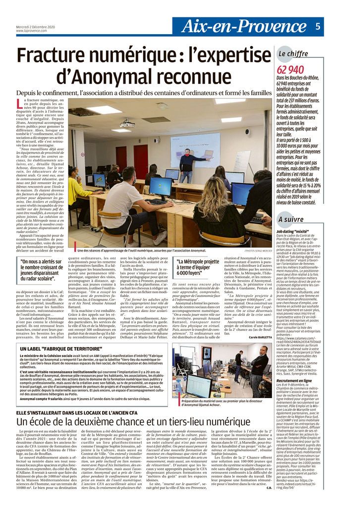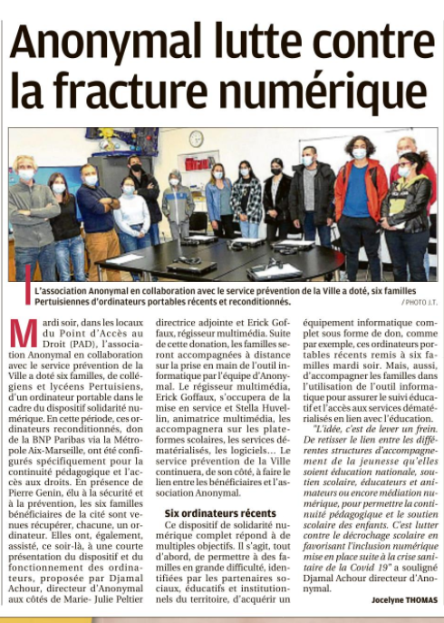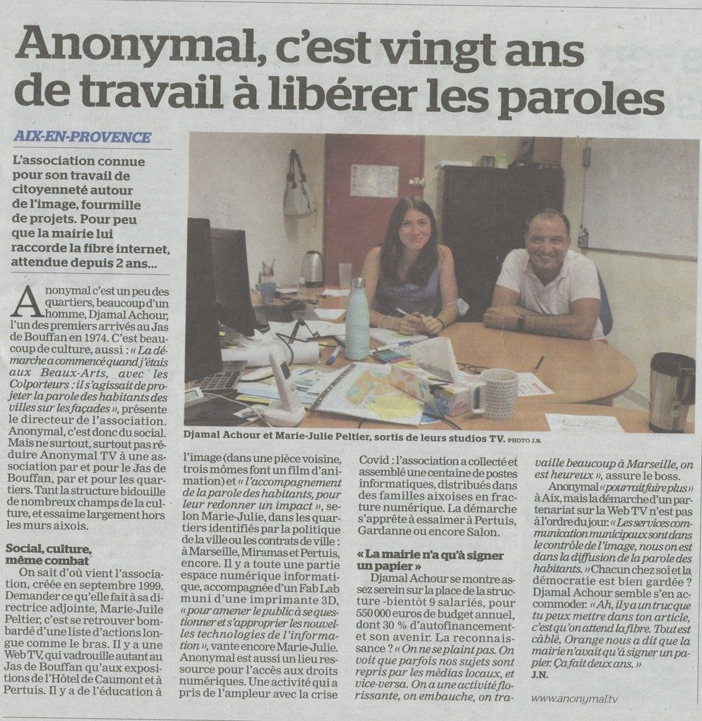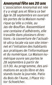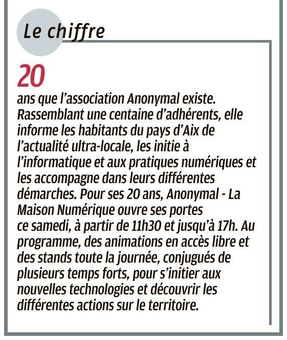 Depuis des années, Anonymal agit sur le pays Aixois et ses alentours. De par nos projets, nos actions en centre sociaux mais aussi dans nos locaux du Jas de Bouffan, Anonymal et La Maison Numérique ont été largement médiatisés dans les journaux locaux et régionaux. Nous sommes fiers de partager avec vous toutes les publications qui ont été réalisées sur nos actions et nos projets, et de vous donner un accès facile à ces articles grâce à notre Pearl Trees.