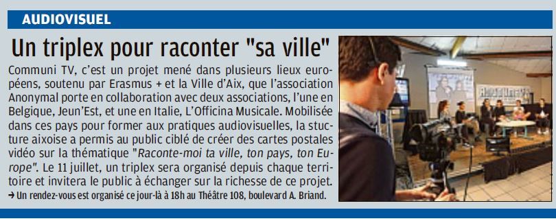 Pour voir le triplex du projet européen CommuniTV, c'est par là...