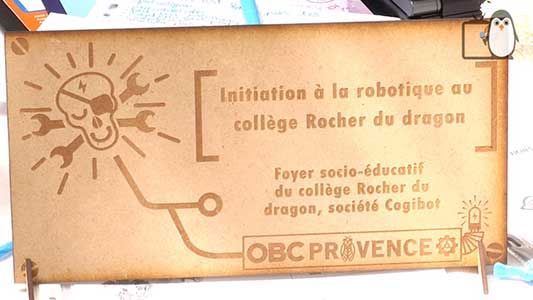 A l'occasion de la nouvelle édition de l'Open Bidouille Camp, le Collège Rocher du Dragon tenait un stand d'initiation à la robotique, tenu par des élèves du club.