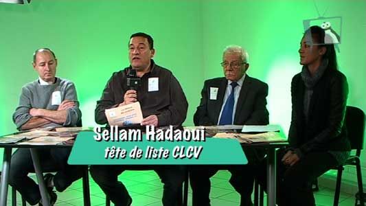 Entretien avec Vincent Laroza (représentant locataires CLCV (Consommation Logement Cadre de vie)), Sellam Hadaoui (tête de liste CLCV aux élections de représentants de locataires au conseil d'administration de Pays d'Aix Habitat), Eric Dagmey (candidat sur la liste CLCV) et Stelly Sifaix (chargée de communication CLCV).